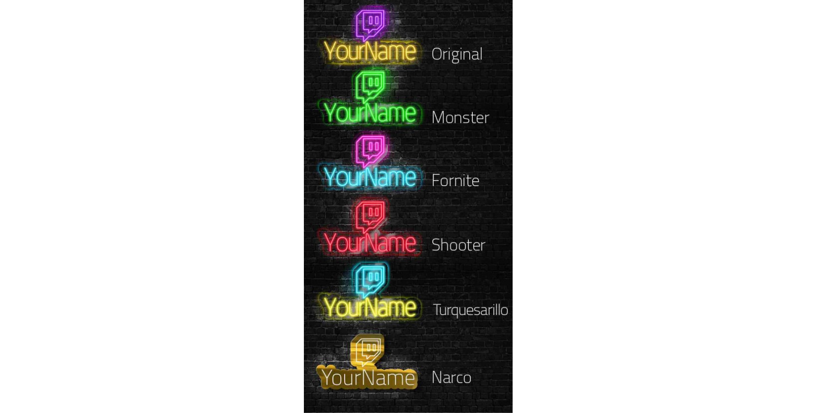 Néon Twitch + votre nom entièrement personnalisé. Nous vivons actuellement dans l'ère des jeux vidéo. Ce néon sera parfait pour décorer votre terrain de jeu.