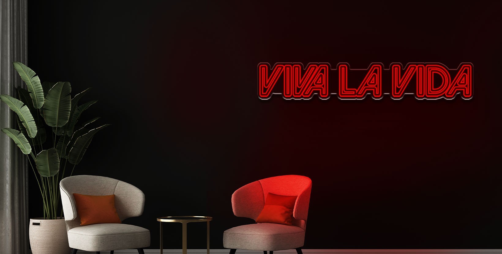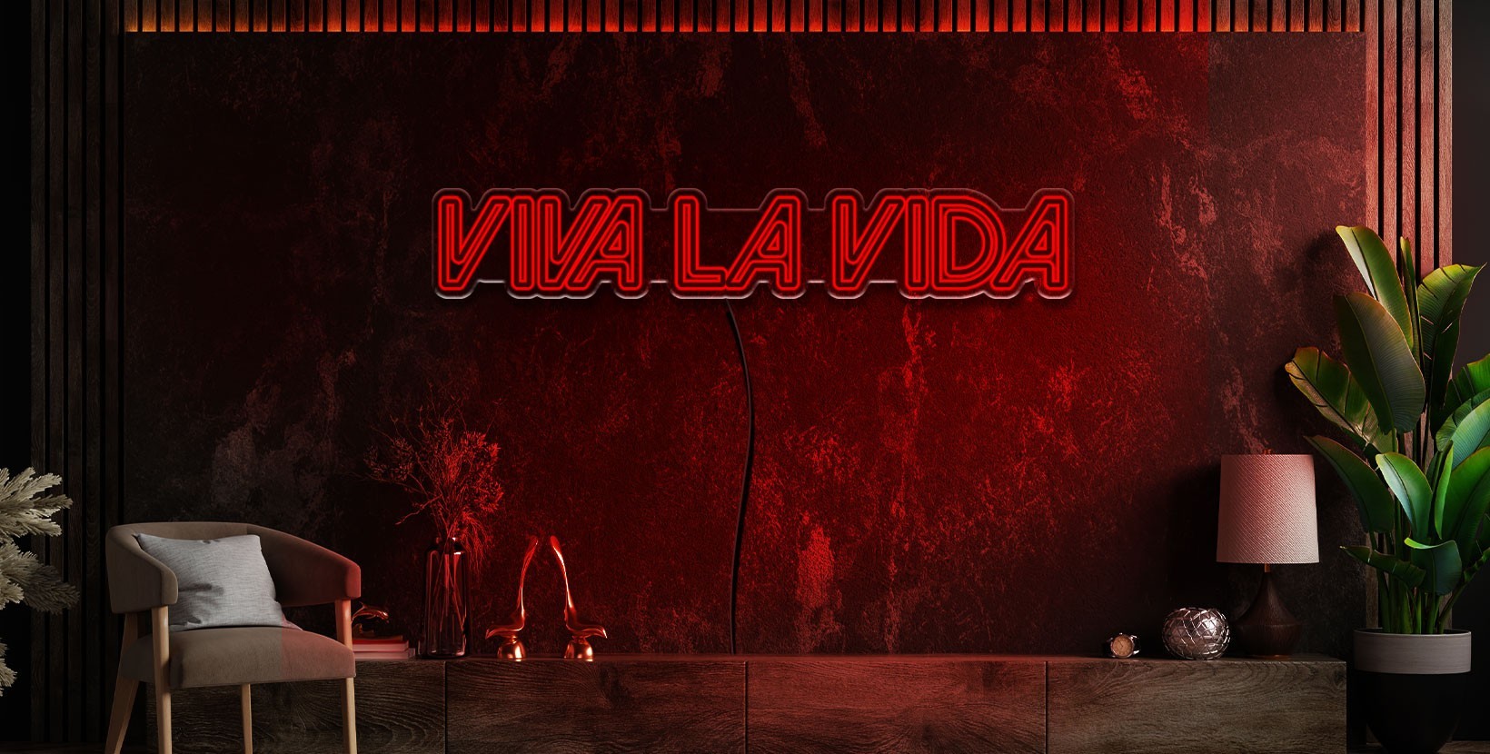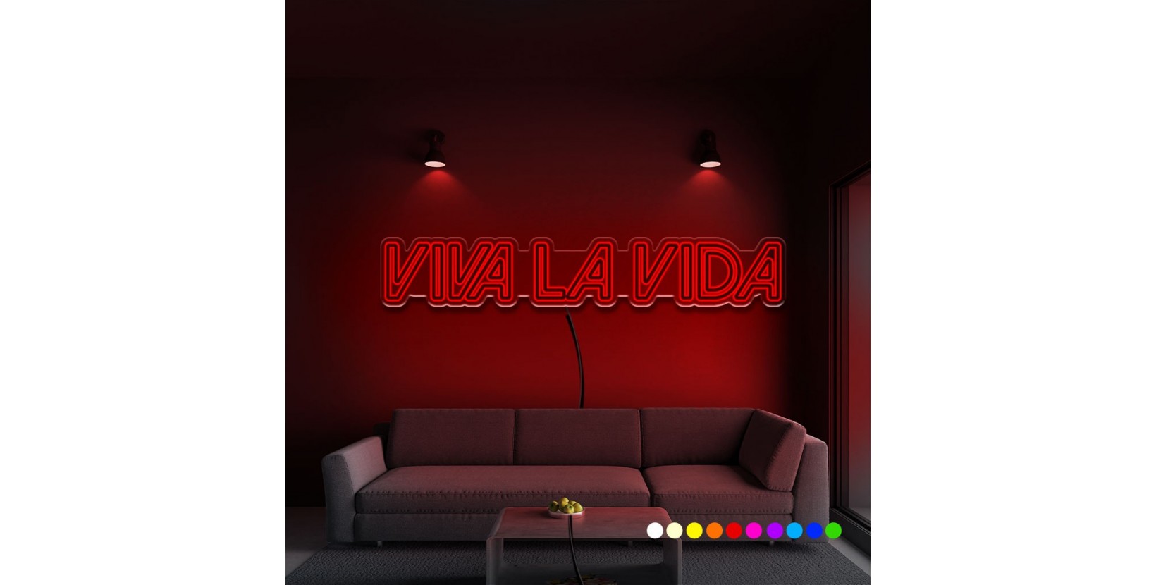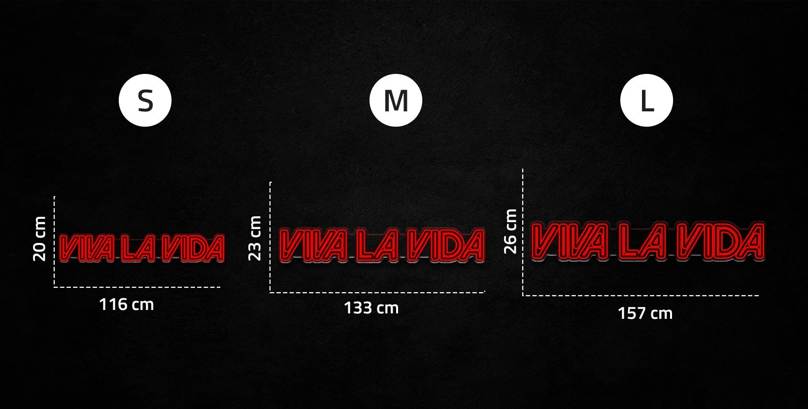 Fantastique néon à led avec la phrase ''Viva la vida'' . Idéal pour décorer votre chambre ou n'importe quel espace. Disponible dans toutes les couleurs et en trois tailles différentes ( S 116 x 20 cm | M 133 x 23 cm | L 157 x 26 cm).