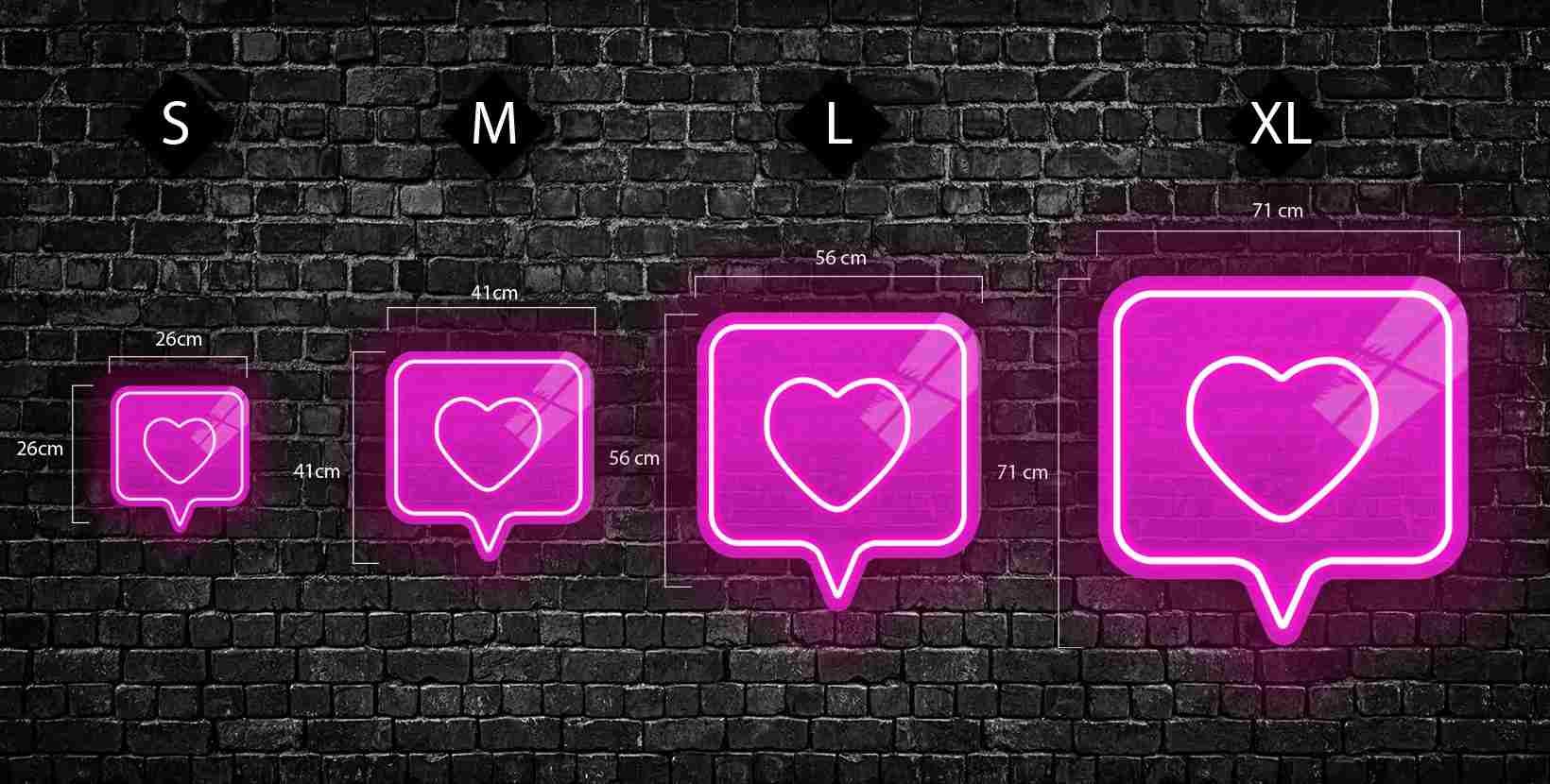 Choisissez votre néon de Like dans différentes couleurs et tailles. Vous pouvez l'accrocher ou le visser.Il fonctionne à 12v mais il dispose d'une alimentation électrique pour qu'il fonctionne connecté à la lumière à 220v