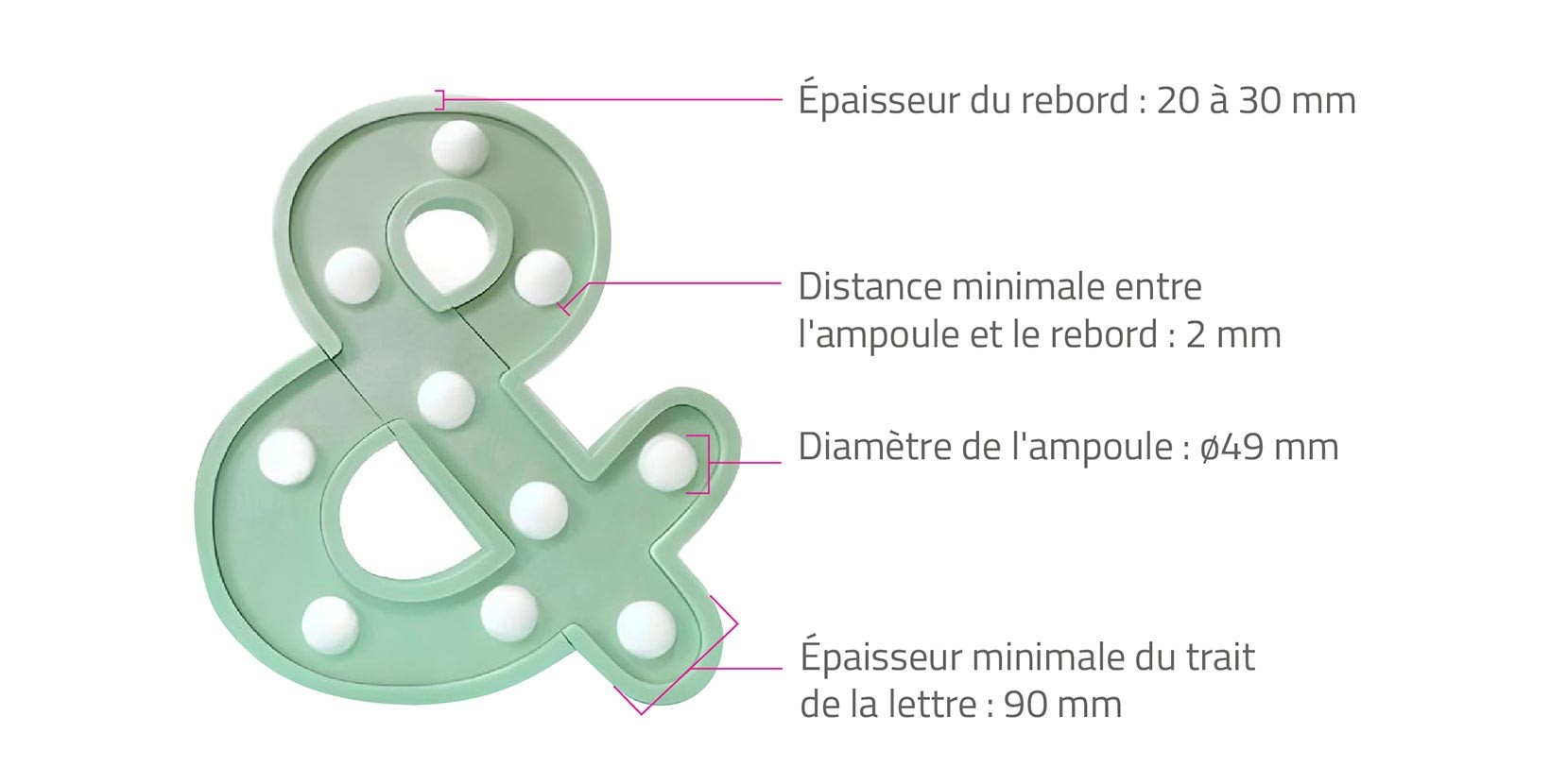 Distance minimale entre l'ampoule et le rebord : 2 mm