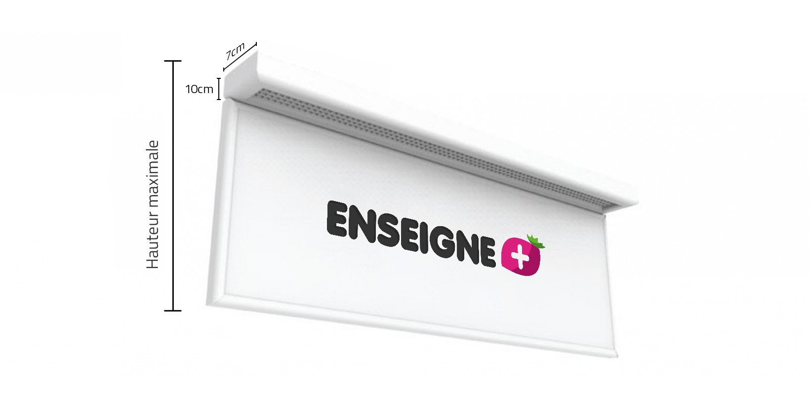 Enseigne caisson avec luminaire est 100% personnalisable. Vous pouvez choisir la couleur du cadre. C'est un équipement électronique laqué. Chez Enseigne Plus, les enseignes lumineuses sont conformes à la norme ISO 9001.