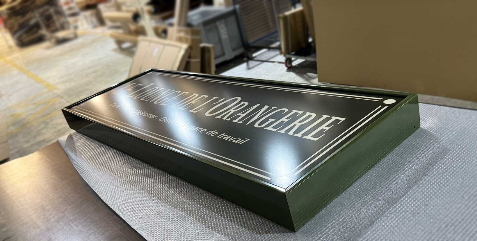 Pour les caissons lumineux de plus de 3 mètres, l'enseigne est livrée en deux pièces pour faciliter le transport et l'installation.