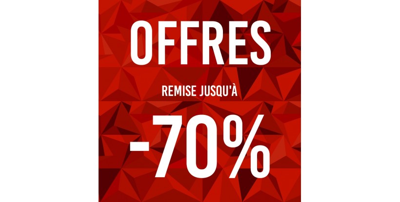 Affiche de vente pour des offres jusqu'à 70% de réduction. Nous...