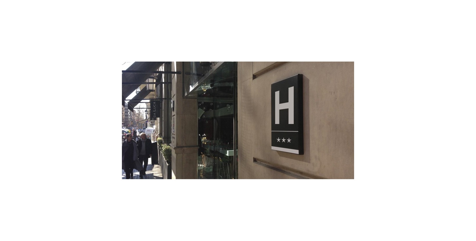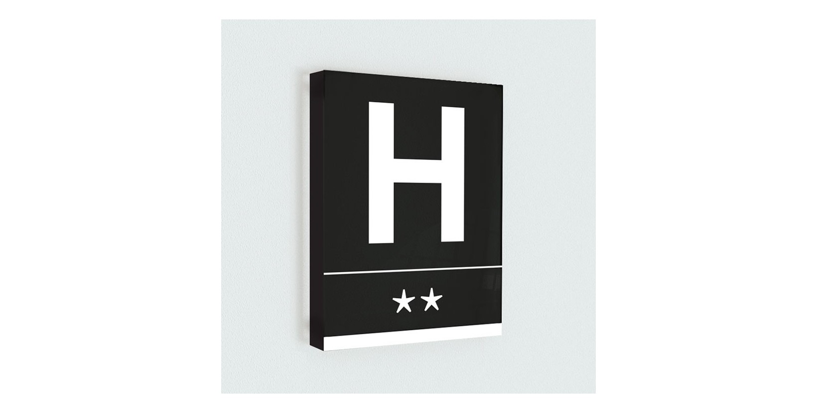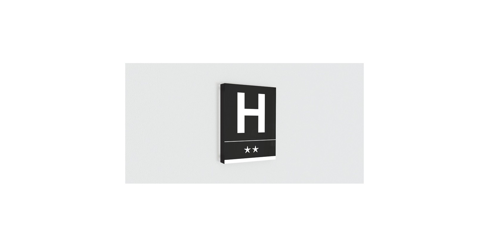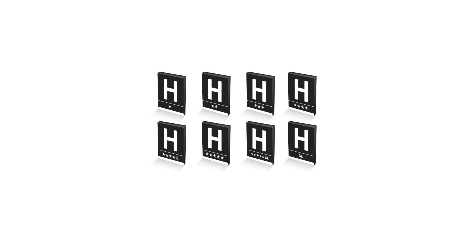 Badge officiel des établissements touristiques de Catalogne, modèle d'hôtel au choix avec différents degrés de catégorisation en fonction des étoiles de l'établissement.