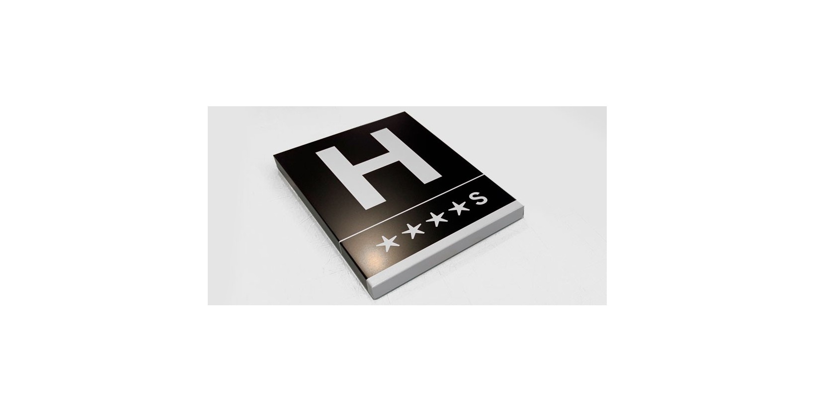 Plaque touristique distinctive pour les hôtels de la Communauté autonome de Catalogne, avec une taille de plaque de 220 x 300 x 20 mm.