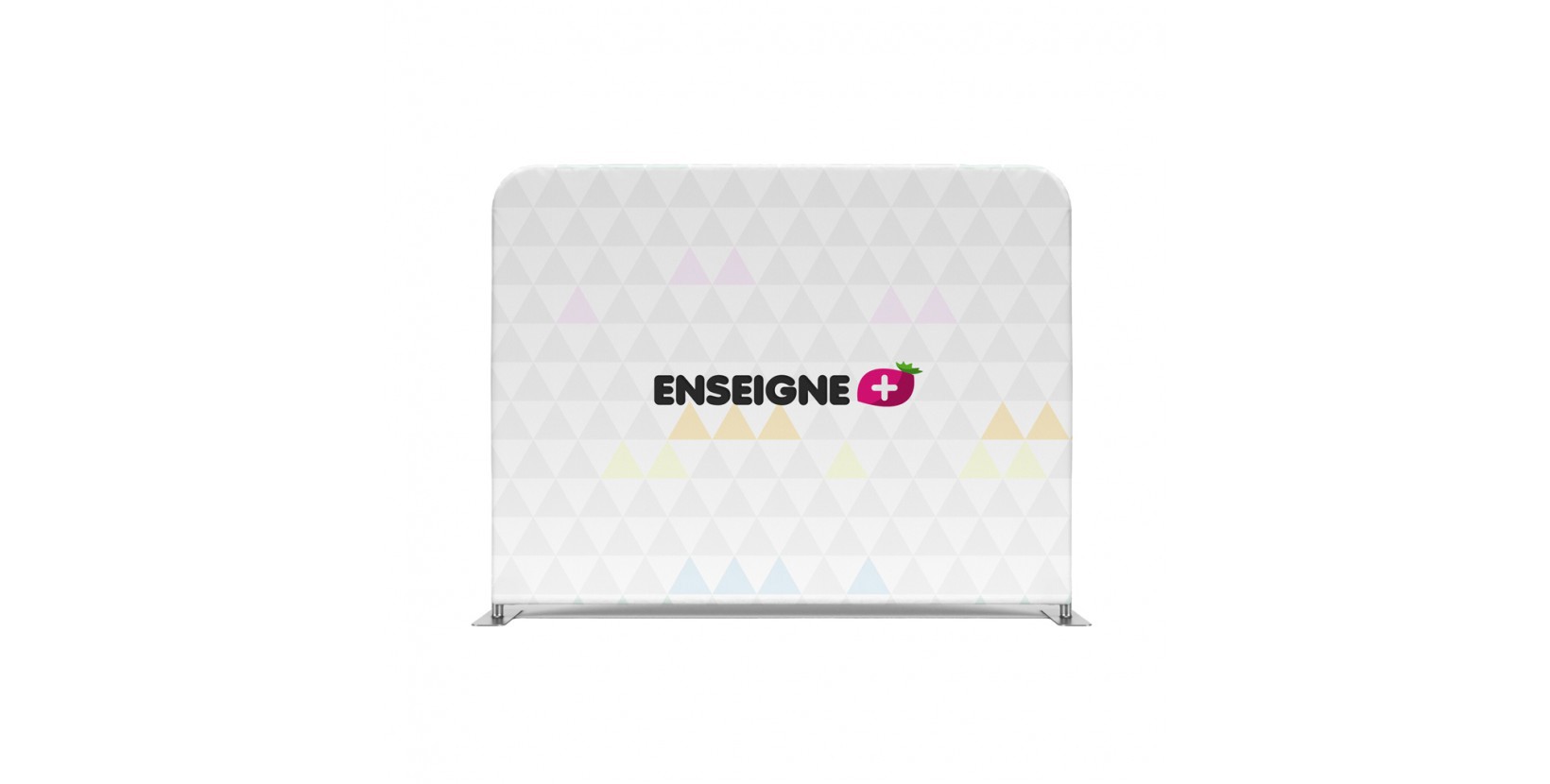 Idéal pour les événements, présentations et salons, disponible en plusieurs tailles (de 240x230cm à 600x300cm) pour un impact visuel professionnel et personnalisé.