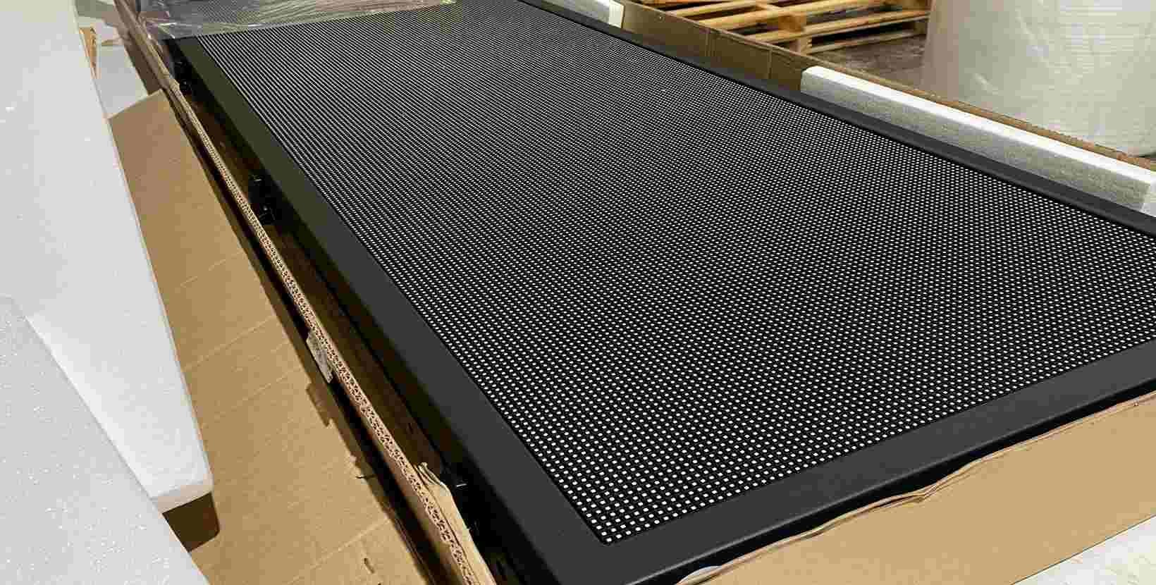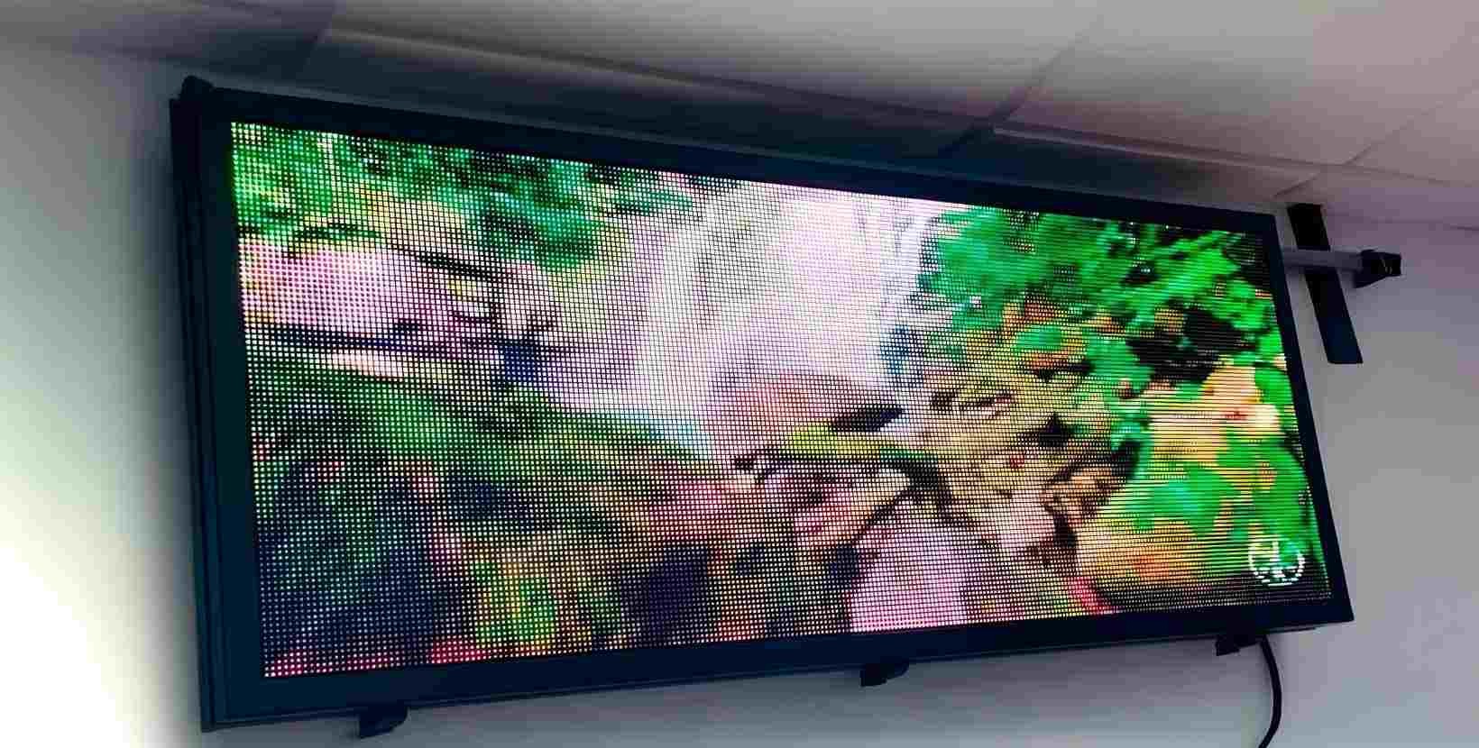 Logiciel en espagnol et anglais. Mesure 134 x 54 cm, 194 x 54 cm et 294 x 54 cm avec une épaisseur de toutes les tailles de 10 cm. Écran LED SMD, pas : 5 mm ou 4 mm.