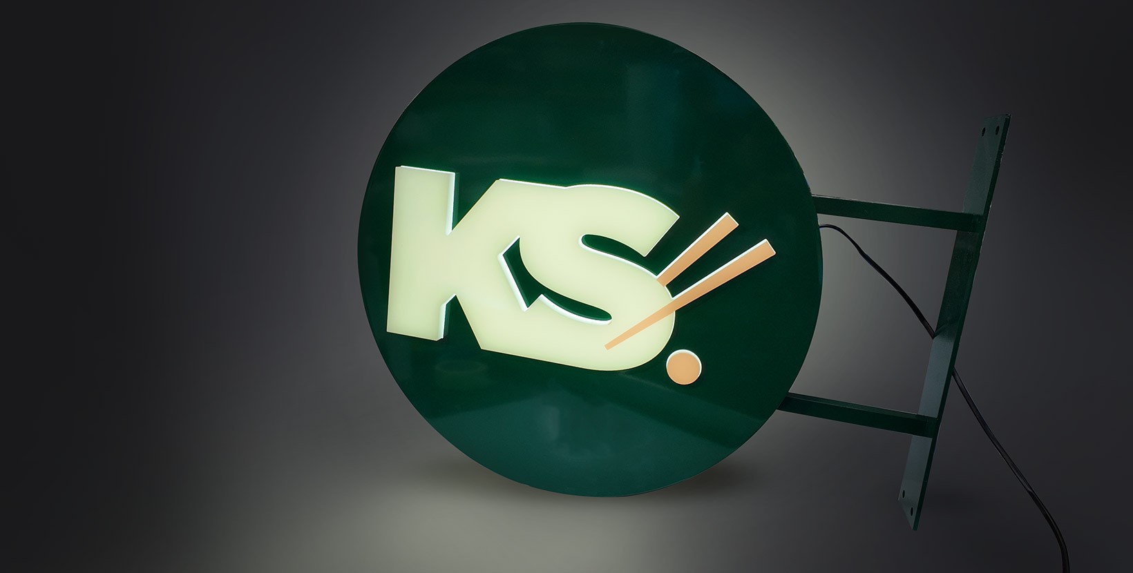 Enseigne lumineuse ronde sans couvre-pieds, relief de 20 mm et couleur RAL 6005. 3 tailles disponibles: S 50 cm, M 60 cm, L 70 cm