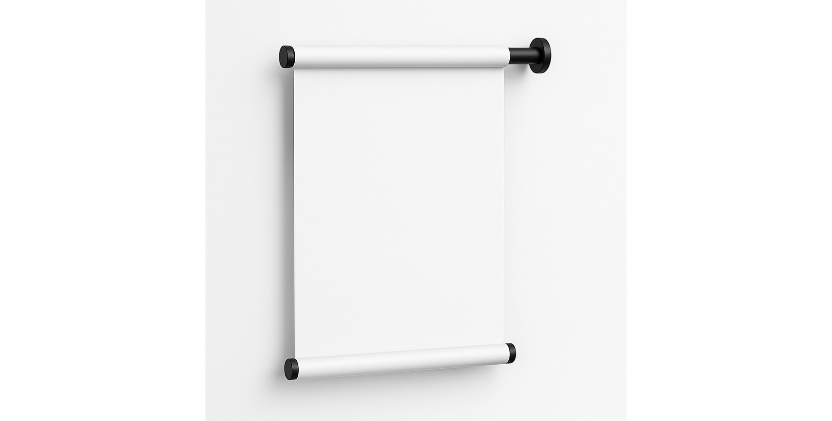 Kakémono en toile imprimée fixée au mur uniquement avec un poteau. La partie inférieure a un contrepoids qui permet de la garder toujours visible. Disponible en différentes tailles.