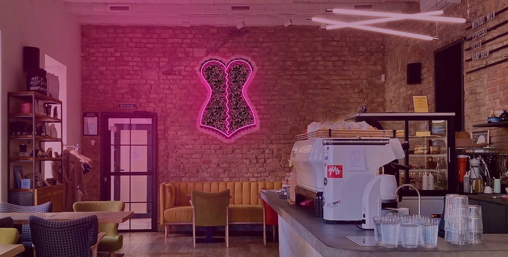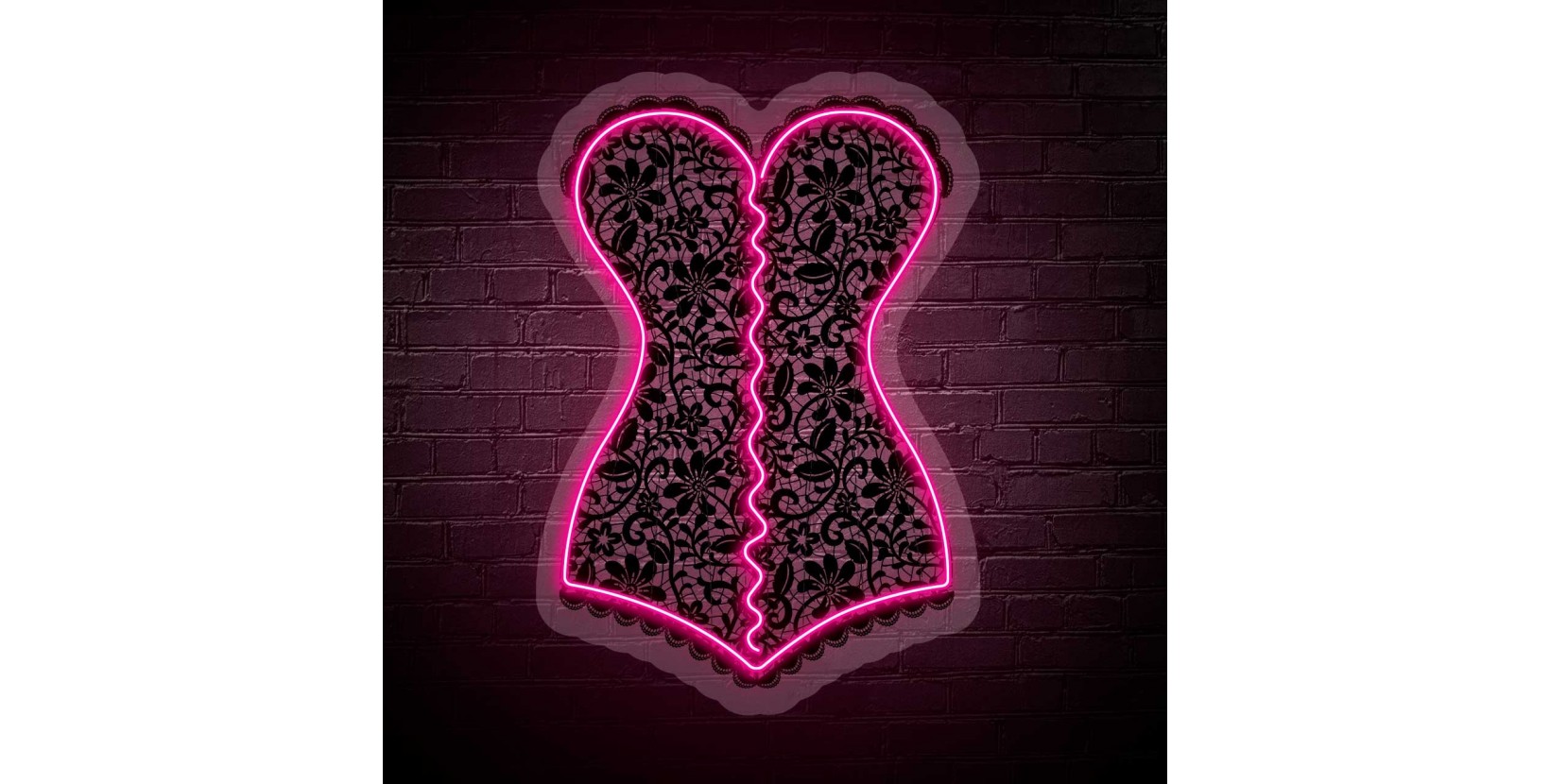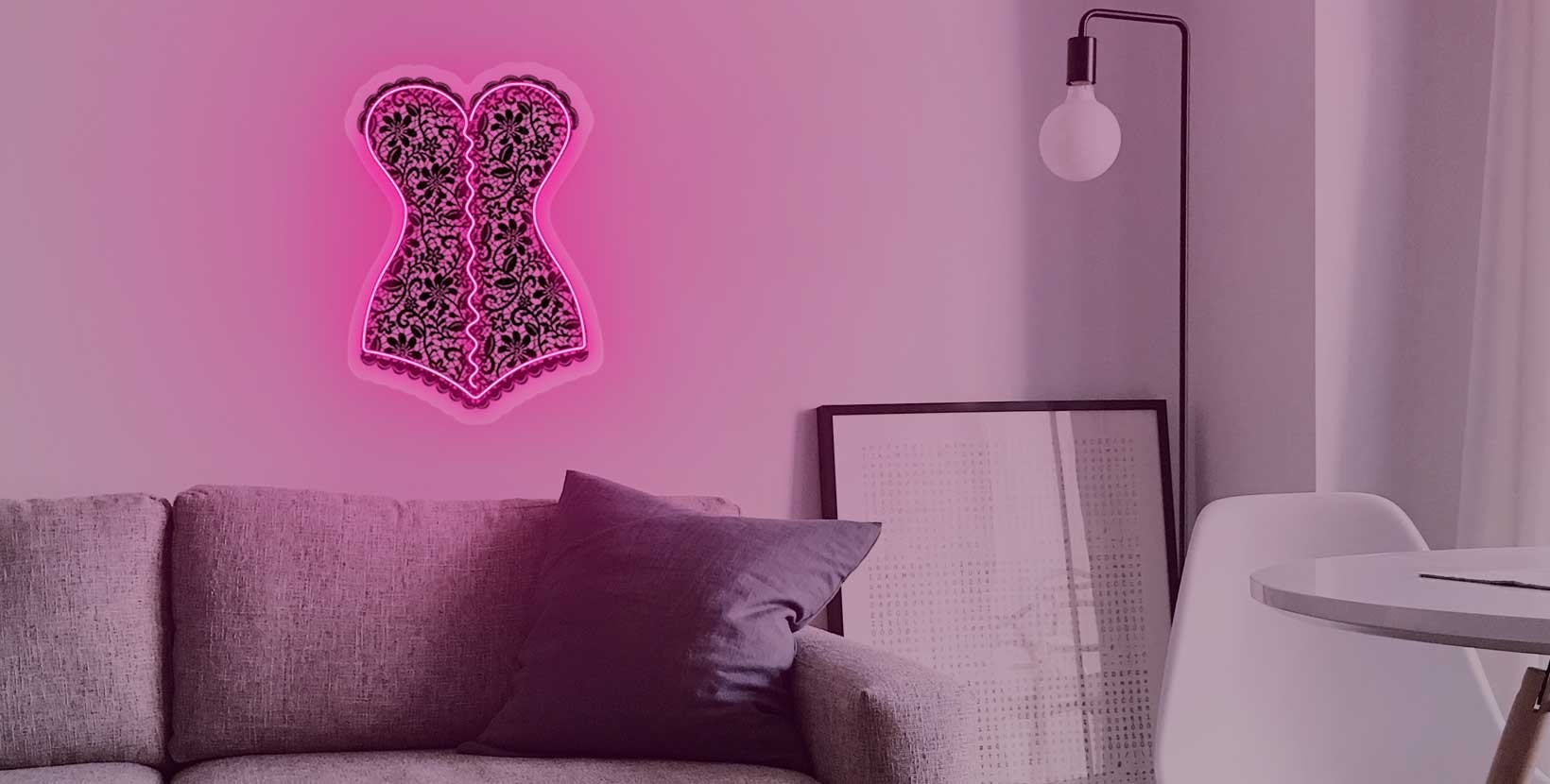 Décorez n'importe quel espace avec ces corset en néon avec méthacrylate imprimé.