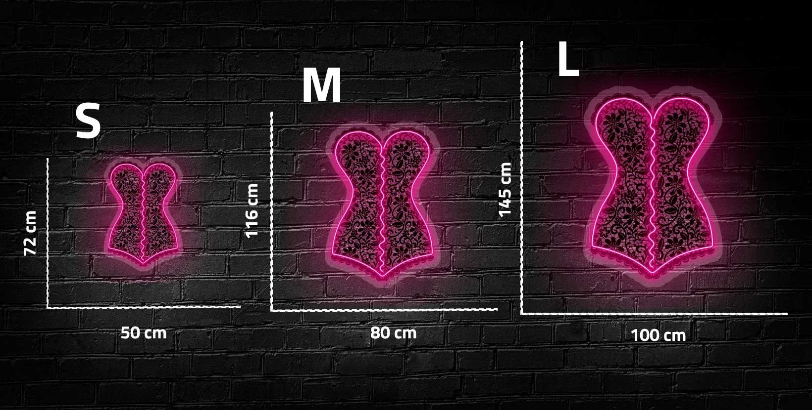 Si vous voulez être original dans la décoration de votre maison, achetez ce joli néon avec la forme de corset sur méthacrylate imprimé. Idéal pour une chambre ou même pour le salon!
