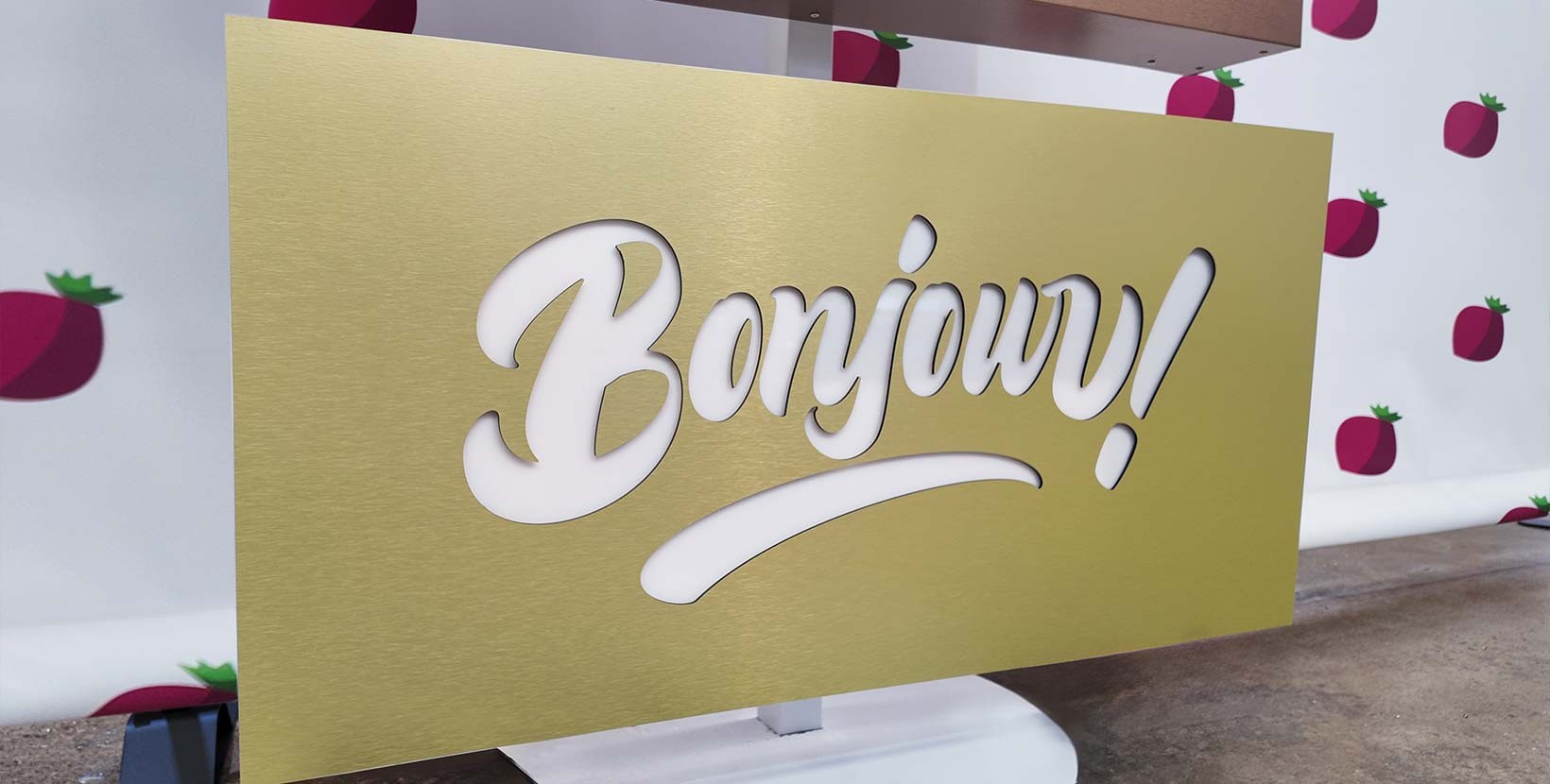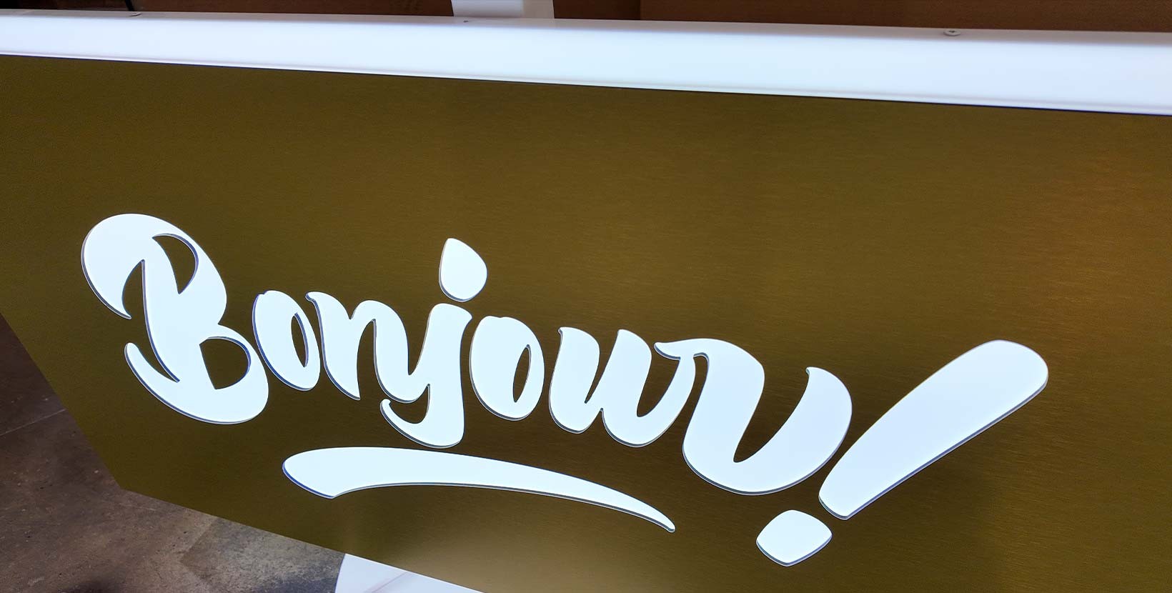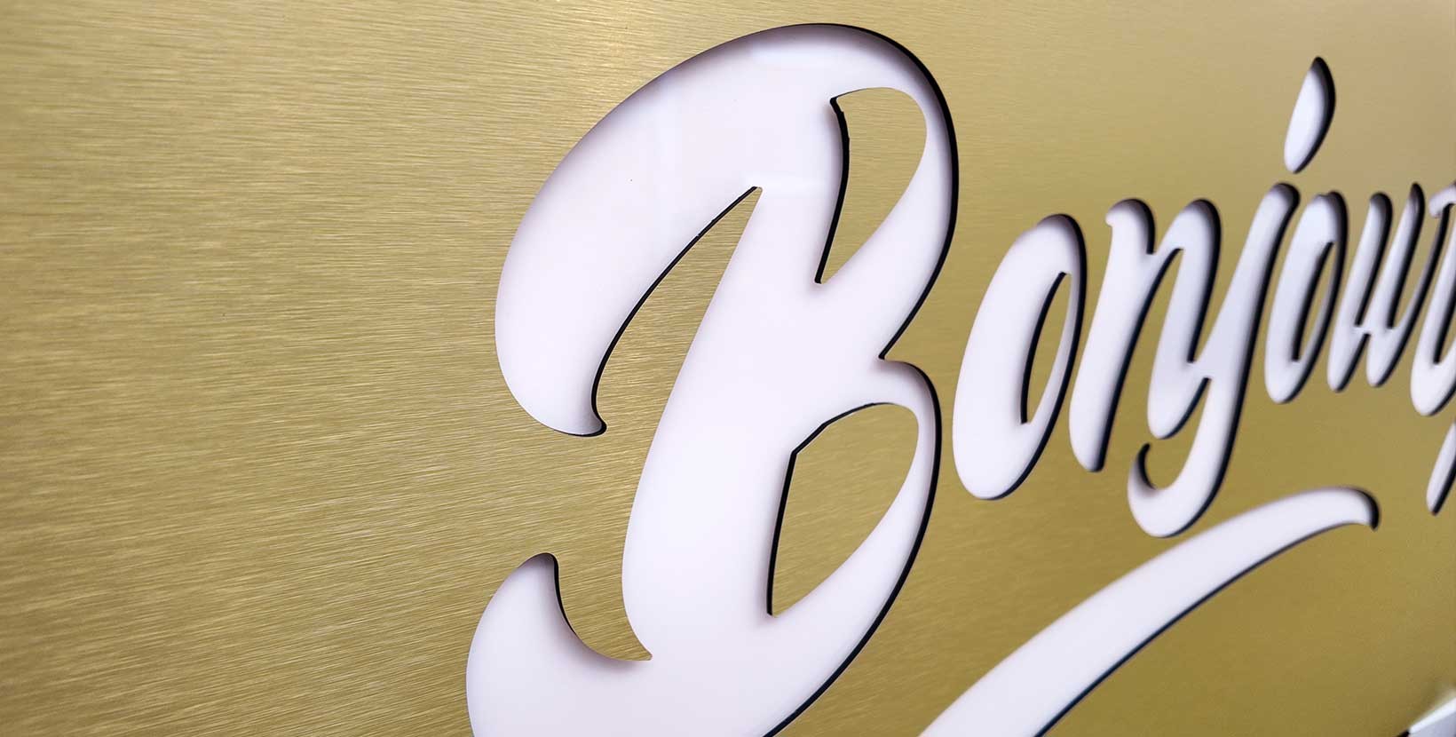 Enseigne drapeau en dibond 3 mm avec votre texte ajouré. La lumière...